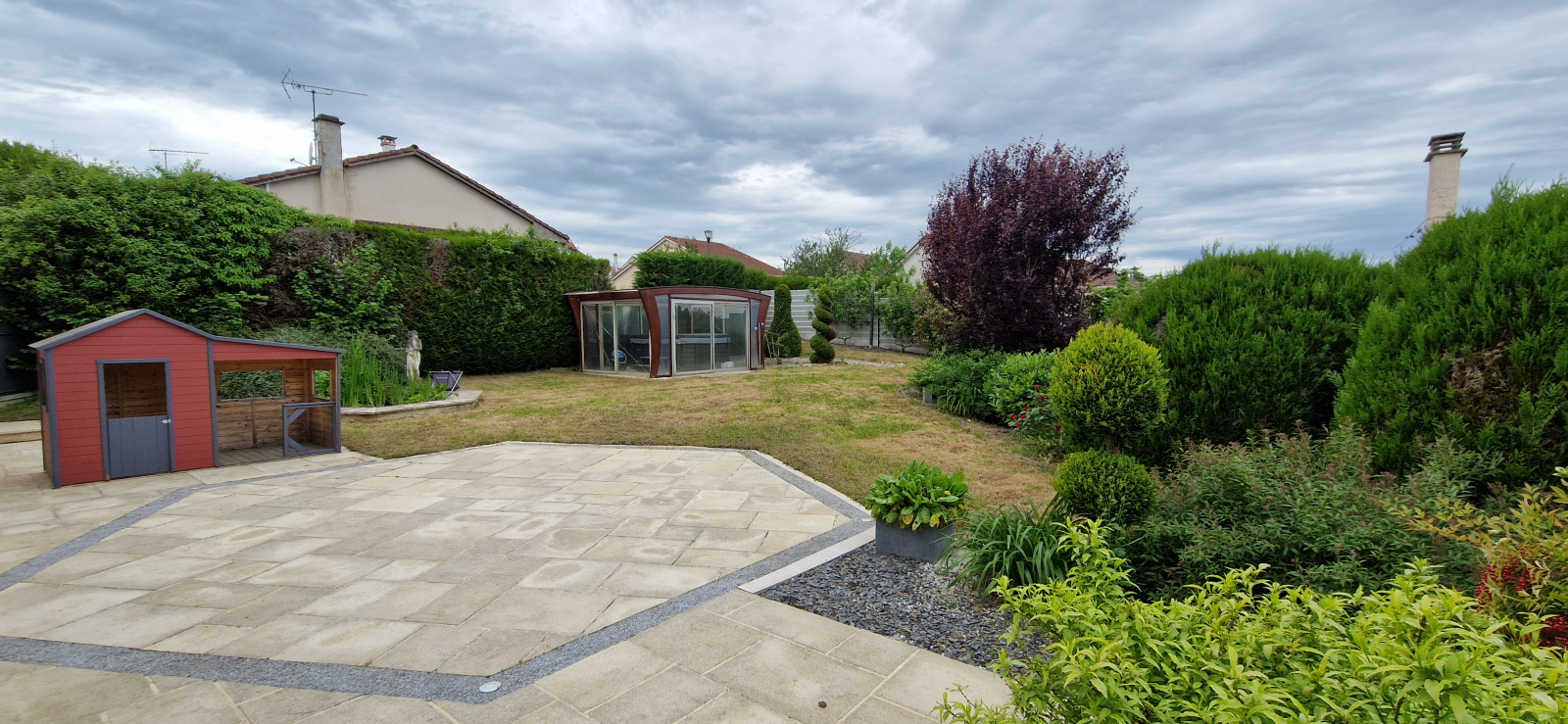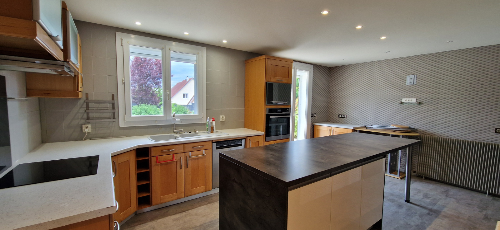En exclusivité à Fléville, dans un secteur très calme, superbe maison indépendante offrant 160 m² Hab. composée d'un vaste salon/salle à manger de 65 m² avec cheminée, cuisine équipée de 22 m², mezzanine, trois chambres avec dressings, bureau, salle de bains, salle d'eau, 3 w.c, buanderie/chaufferie, garage. Un terrain de 840 m² clos et arboré, dépendances, cabanon, jacuzzi. Panneaux photovoltaïque, climatisation, chauffage ind. gaz. A DECOUVRIR RAPIDEMENT !